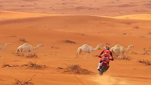 شهدت منافسات رالي دكار السعودية 2022 اليوم الثلاثاء، لقطة مثيرة خلال أحد السباقات للدراجات النارية.