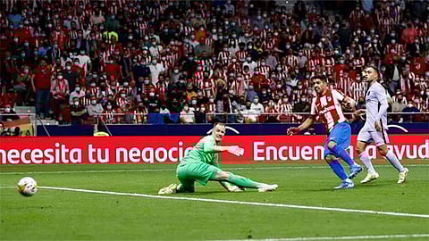 وقبل نهاية الشوط الأول بدقيقة استطاع لويس سواريز تسجيل ثاني أهداف الأتليتي، بعد تمريرة من توماس ليمار من جهة اليسار وصلت إلى سواريز المنفرد بالمرمى يمين منطقة الجزاء فسدد الأخير كرة سكنت يمين المرمى.