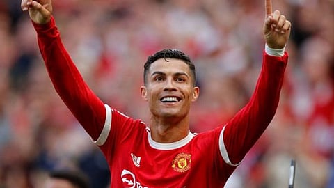 وسجل رونالدو الهدف الأول في أولد ترافورد بتسديدة هائلة في الدقيقة 12، ليعادل الرقم القياسي.