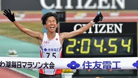 وحطَّم صاحب الـ25 عامًا الرقم القياسي لأسرع زمن في اليابان المسجل باسم سوجورو أوساكو، الذي قطع ماراثون طوكيو الذي أقيم في مارس 2020 في ساعتين وخمس دقائق و29 ثانية.