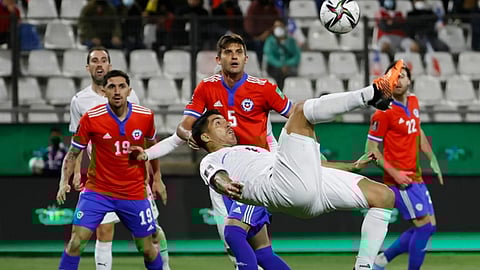 وبصم سواريز على هدف رائع من لعبة مقصّية، ليقود منتخب أوروجواي لتحقيق فوز ثمين خارج الديار على حساب مضيفه تشيلي، بهدفين دون رد، في المباراة التي جرت في ساعة مبكرة صباح اليوم الأربعاء، على ملعب سان كارلوس دي أبوكيندو، لحساب الجولة الأخيرة من تصفيات أمريكا الجنوبية المؤهلة إلى كأس العالم.