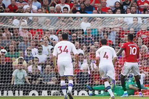 وأعطى حكم المباراة ركلة جزاء لمانشستر يونايتد بعد عرقلة ميليوجيفيتش، المنطلق من الخلف ماكتوميناي، إلا أن راشفورد أضاع ركلة الجزاء بتسديد الكرة في القائم الأيمن بالدقيقة 70.