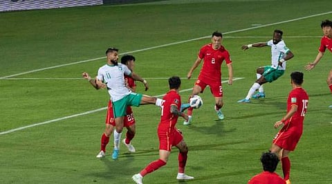 وانتظر الأخضر حتى الدقيقة الأولى من الوقت المبدد لشوط المباراة الأول من أجل فك طلاسم الدفاع الصيني، بعدما أرسل القائد سلمان الفرج ركنية رائعة إلى صالح الشهري، الذي حولها رأسية متقنة إلى داخل الشباك، ليمنح الصقور تقدمًا مستحقًّا.