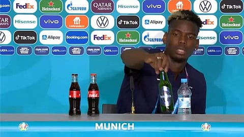 وأبعد بوجبا زجاجة «هينكين» عن منصة المؤتمر الصحفي، قبل مباراة منتخب فرنسا أمام نظيره الألماني، لحساب الجولة الأولى من دور المجموعات، والتي انتهت بفوز الديوك بهدف دون رد، في اللقاء الذي جرى على ملعب إليانز آرينا بمدينة ميونخ.