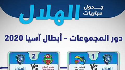 فيما يواجه الهلال شباب الأهلي الإماراتي ذهابا يوم الاثنين 17 فبراير وإيابا يوم الثلاثاء 5 مايو.