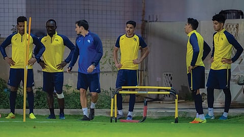 وبدأت التمارين بقيادة المدير الفني البرتغالي فيتور كامبيلوس بعمليات التسخين، بعدها طبق المدرب عددًا من الجمل التكتيكية.