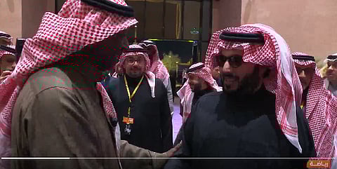 استقبل رئيس هيئة الترفيه، تركي آل الشيخ، أساطير الكرة السعودية يوسف الثنيان، وماجد عبدالله، ومحمد الدعيع، على هامش نهائي كأس موسم الرياض بين الهلال والنصر.