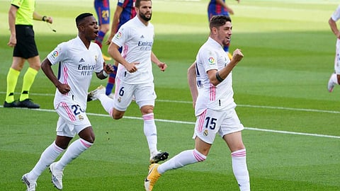 وافتتح ريال مدريد التسجيل مبكرًا، عند الدقيقة 5 من زمن الشوط الأول بعد تمريرة رائعة من المهاجم الفرنسي كريم بنزيما إلى زميله القادم من الخلف إلى الأمام لاعب الوسط الأوروجوياني فيديريكو فالفيردي، الذي توغل داخل منطقة جزاء برشلونة قبل أن يسددها على يمين الحارس نيتو.