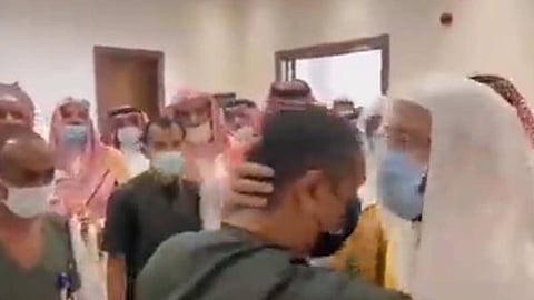 وظهر وزير الشؤون الإسلامية في مقطع الفيديو وهو يقبل رأس أحد العمال، وذلك نظرًا لجهوده في صيانة الجوامع والمساجد بمنطقة جازان.