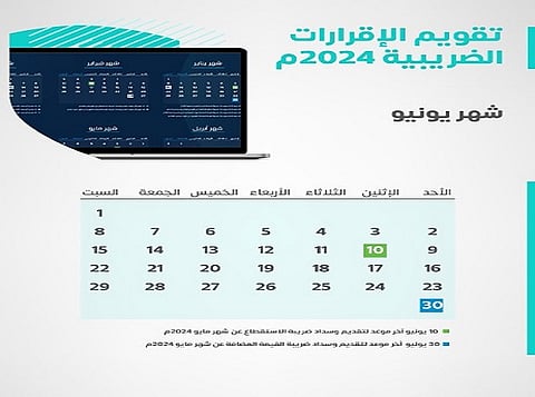 30 يونيو آخر موعد لتقديم وسداد ضريبة القيمة المضافة عن شهر مايو 2024م