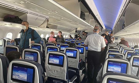 فيما استأنفت الطائرة رحلتها بعد تأخير استمر 45 دقيقة عن موعد إقلاعها الرسمي.