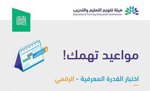 حددت هيئة تقويم التعليم والتدريب مواعيد اختبار القدرة المعرفية الرقمي، وذلك بعد انتهاء فترة عقد اختبار القدرة المعرفية الورقي، الذي عقد أمس واليوم، حيث بدأت استقبال طلبات تسجيل اختبار القدرة المعرفية الرقمي 2024.