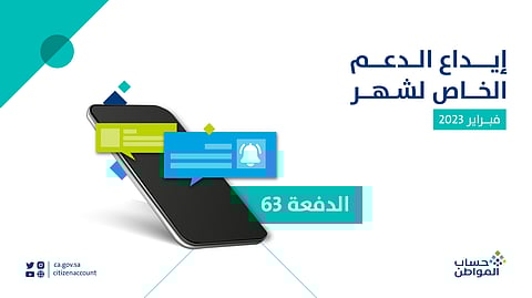يبدأ حساب المواطن في الساعات الأولى من صباح اليوم إيداع الدفعة 63 من حساب المواطن، وهي الدعم المخصص لشهر فبراير 2023، وبدأ إيداع الدعم للمستفيدين المكتملة طلباتهم في حساب المواطن.
