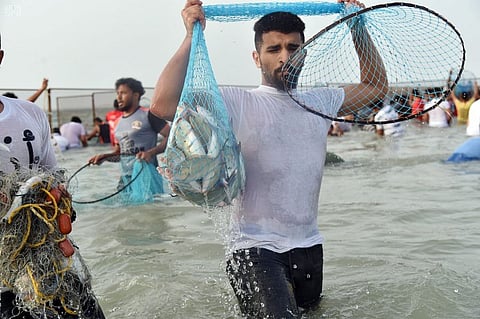 ولم تقتصر المشاركة على الصيادين المتسابقين في صيد أسماك الحريد المنتشرة بالممر المائي الضحل، بل شارك الأطفال أيضًا في تلك الأجواء؛ حيث المناسبة السنوية، التي توارثها أهالي فرسان عن الآباء والأجداد منذ مئات السنين.