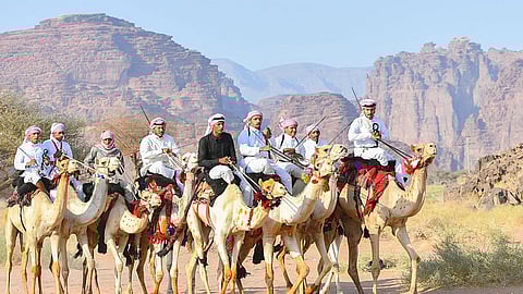 وتتسم مباهج العيد كما رصدتها وكالة الأنباء السعودية لدى سكان بادية تبوك بعادات قلّ نظيرها، تنم عن الأصالة والمعاصرة والطابع الرصين، الذي اعتادوه من خلال إيقاع حياتهم المنبسطة في الصحراء، وارتباطهم بالإبل التي يزينونها وينطلقون بها في كل عيد ومناسبة، مرددين لونهم الشعبي الخاص، بعبارات يملؤها الفرح لإحياء أيام العيد.