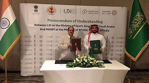 ووقع مذكرة التفاهم معهد تنمية القادة التابع لوزارة الرياضة بالمملكة العربية السعودية، ومعهد «مورارجي ديساي» الوطني لليوغا التابع للحكومة الهندية، بحضور السفير الهندي لدى المملكة العربية السعودية، أوصاف سعيد، ومدير عام معهد تنمية القادة، عبدالله فيصل حماد.