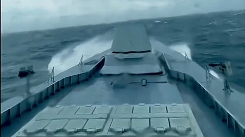 وثَّق مقطع فيديو، لحظة دخول إحدى سفن "جلالة الملك" الحربية، التابعة للقوات البحرية الملكية السعودية، داخل إعصار شاهين في بحر العرب.