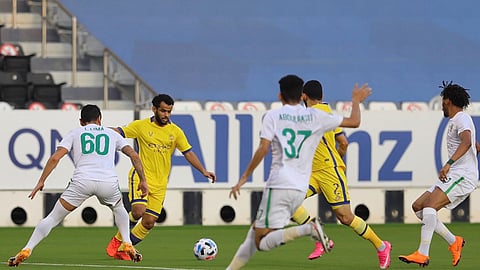 وضع نادي النصر قدمًا في نصف نهائي دوري أبطال آسيا بعدما أنهى الشوط الأول أمام الأهلي في ربع نهائي المسابقة القارية بالتقدم بهدف وحيد أحرزه جونزالو مارتينيز على استاد جاسم بن حمد في العاصمة القطرية الدوحة.
