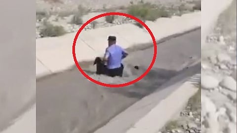 ويظهر الفيديو أفراد الشرطة وهم يقاومون تيار الماء الجاري لإنقاذ الأغنام التي سقطت داخله حتى تمكنوا من إتمام المهمة، بينما تظهر لقطة أخرى أحد الأشخاص، وهو يثني على ما قاموا به من عمل بطولي.