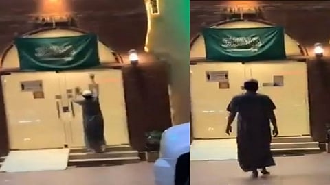 تداول عدد من رواد مواقع التواصل الاجتماعي، مقطع فيديو، يوثق لحظة قيام شاب بسرقة علم من أحد المباني ليحتفل به.