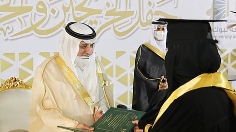 سلم أمير منطقة تبوك، الأمير فهد بن سلطان عبدالعزيز، شهادات التفوق للطلاب والطالبات بجامعة تبوك، كما سلم أول شهادة تخرج تطبع بلغة (برايل) الخاصة بفاقدي البصر.
