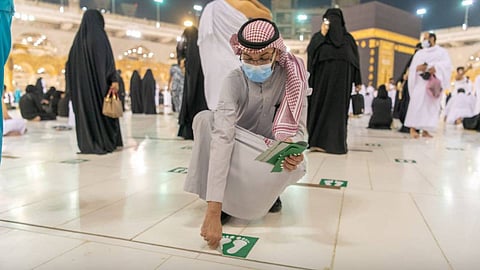 شاهد البدء بإزالة ملصقات التباعد في صحن المطاف بعد السماح باستخدام كامل الطاقة الاستيعابية لـ #المسجد_الحرام@m_smaih pic.twitter.com/6Cbaro8zpG