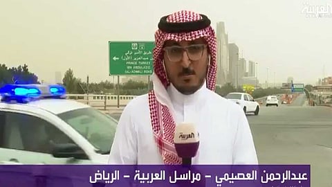 استوقفت دورية من مرور الرياض، مراسل قناة «العربية» عبدالرحمن العصيمي، أثناء البث المباشر؛ لرصد حركة السير على الطرق خلال فترة منع التجول.