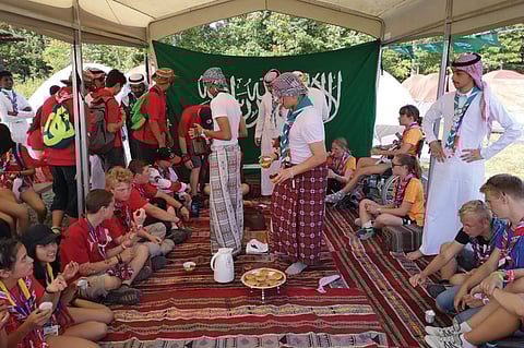 شارك وفد جمعية الكشافة العربية السعودية، في الجامبوري الكشفي العالمي الرابع والعشرين المقام حاليًا في محمية سوميت بيكتل بولاية فرجينيا الغربية بالولايات المتحدة الأمريكية، في يوم الثقافات العالمي أمس الجمعة، بفعاليات ثقافية وشعبية سعودية متنوعة.