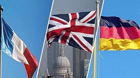 دعا بيان مشترك بين بريطانيا وألمانيا وفرنسا، إيران إلى الوفاء التام بالتزاماتها النووية، مشددًا على أن عدم وفائها بالتزاماتها أمر مقلق، ويُلحق ضررًا خطيرًا باتفاقية حظر انتشار الأسلحة النووية.