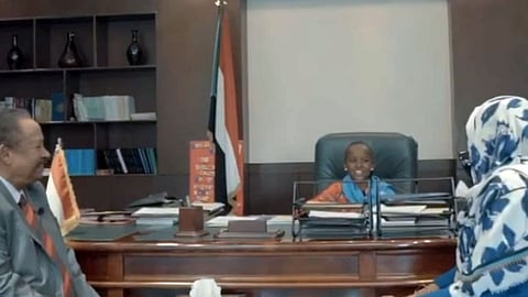 وجلست الطفلة ماريا على مكتب رئيس الوزراء عبدالله حمدوك، الذي كان في استقبالها أمام مقر الحكومة، وكان برفقتها وزيرة العمل والتنمية لينا الشيخ.